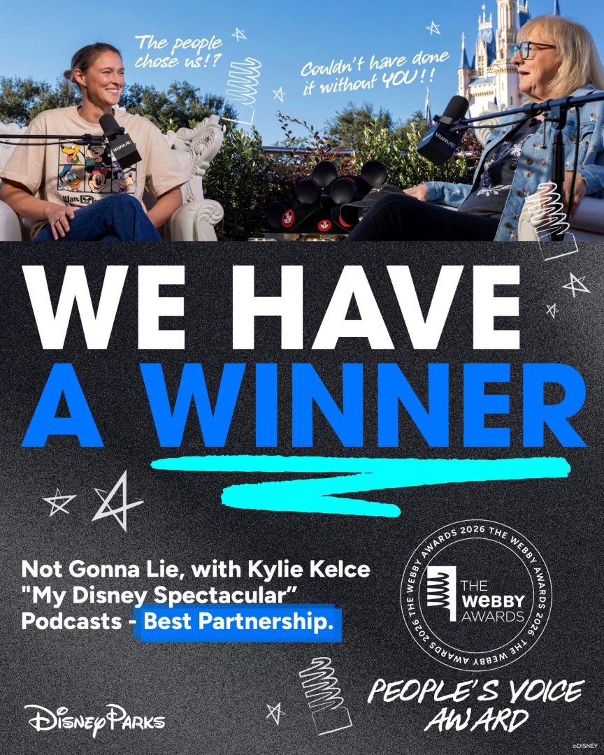 - Best Partnership/Collaboration Podcast – Not Gonna Lie with Kylie Kelce “My Disney Spectacular”